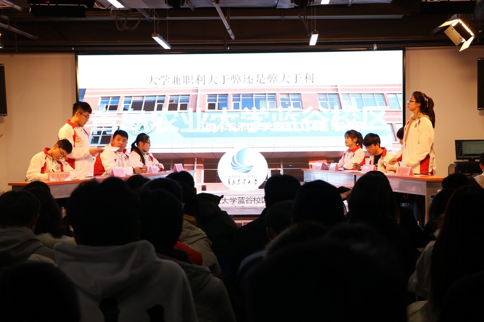比赛伊始,由主持人葛铭对赛程及正反方辩手、到场评委进行了介绍。本次辩论赛围绕着“老员工兼职利大于弊还是弊大于利”的主题展开,开篇立论陈述阶段,来自水生动物医学专业2019级1班的正方一辩刘瑜萍表示,老员工已经成年,并且具备一定的理论知识。在进入社会前应提高自己各方面的能力,做兼职无疑是一个好的方法。而来自水产养殖学专业2019级1班的反方一辩田君则表示,社会上存在各种危险,公司提供大量勤工助学岗位,并且举办各种社会实践活动,但去做兼职会损失掉大量的学习时间。观众们不时对台上选手敏捷机智的发言拍手称赞。攻辩环节,双方分别选定对方辩友展开论述。比赛最精彩的自由辩论环节,反方表示大多数的兼职没有实际意义,老员工的本职工作还是学习,毕竟“学海无涯”;正方则表示,不能“两耳不闻窗外事,一心只读圣贤书”,不能一直活在大学这个“庇护伞”之下。辩手们口若悬河、能言善辩,双方各执己见,针尖对锋芒、不相上下,台下的观众也是情绪高涨,掌声连连。