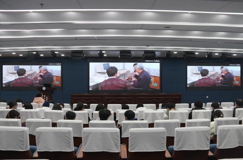 论坛期间,大家集体观看了文圣常院士事迹视频。水养2302班周旭娅作为员工代表发言,并围绕传承、践行与担当三个维度发出倡议:一是要传承精神,以文圣常院士为榜样,秉持家国情怀、严谨治学、创新突破与无私奉献的精神内核。二是要践行使命,将个人理想融入海洋强国建设,夯实专业基础、深耕科研实践,以跨学科思维攻克海洋领域难题。三是要接力担当,做好科学精神的传承者与科普推动者,在团队协作中共同进步,为海洋事业发展贡献青春力量。