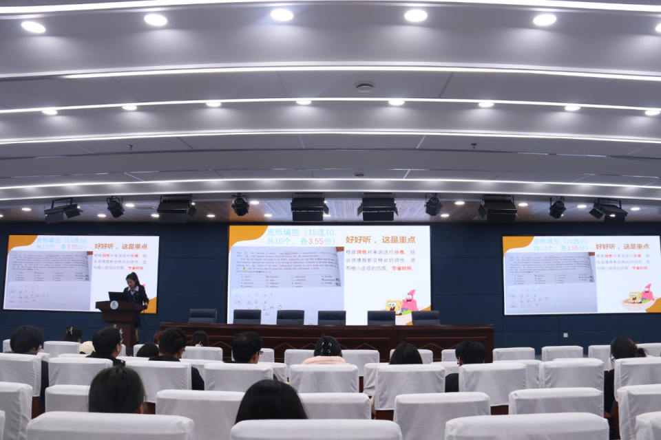 分享会上,两位同学详细解析了听力、阅读、写作和翻译等各个考试部分的策略,并强调了考试流程和答题规范的重要性。任俊蓉根据不同学习阶段,提出个性化的学习计划,并指出了备考过程中的关键时间节点和任务。孙雨则分享了她在记忆单词时的有效方法,如结合音标、例句和插图进行记忆,并推荐了一些美剧和英文电影作为提高听力和语感的辅助材料。对于阅读部分,她建议同学们多做练习,合理分配时间,并学会从答案中学习解题技巧。最后,她们向所有即将参加四六级考试的同学表达了美好祝愿。