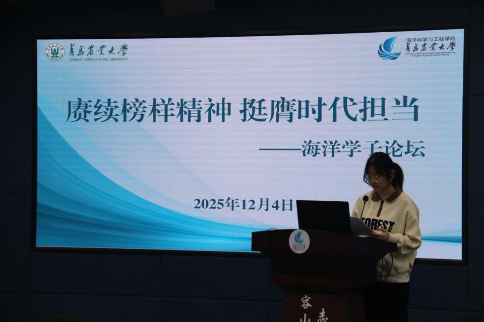 论坛期间,集体观看了汪品先院士的专题采访视频。水养2302班团支书王欣婷作为员工代表分享,并提出三点倡议。一要铸“甘坐冷板凳”之魂,以纯粹之心求索真理。摒弃浮躁,将个人的学术追求,融入到国家深海战略和人类认知进步的洪流中。二要走“交叉协同”之路,在融合中开辟新境。让同学们在知识的边界碰撞、融合,共同锻造开启深海宝库的万能钥匙。三要担“知海护海”之责,做深海生命的虔诚敬畏者。积极传播深海知识,倡导可持续的海洋观,同学们不仅是深海的探索者,更是其永恒奥秘和脆弱生态的守护者。