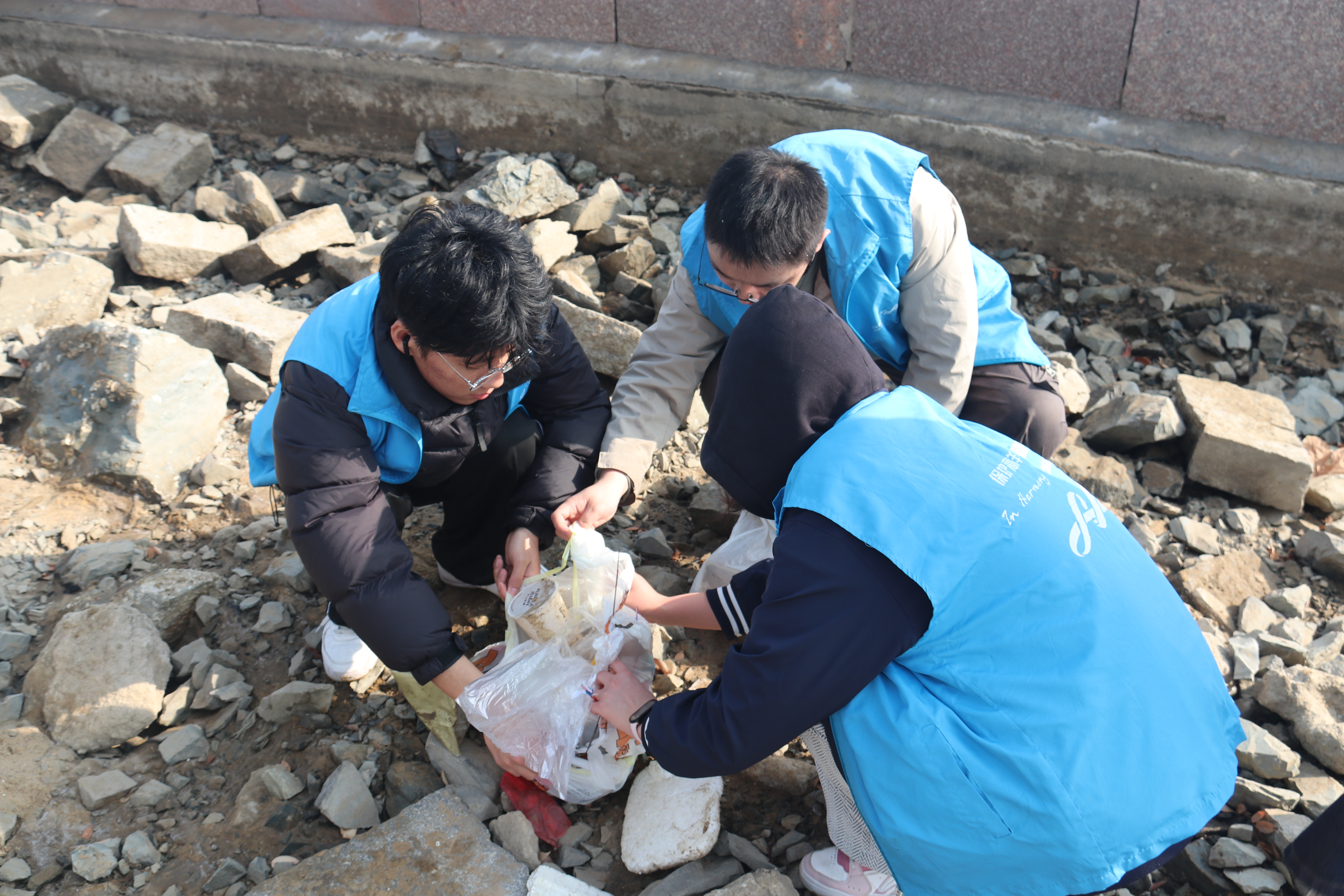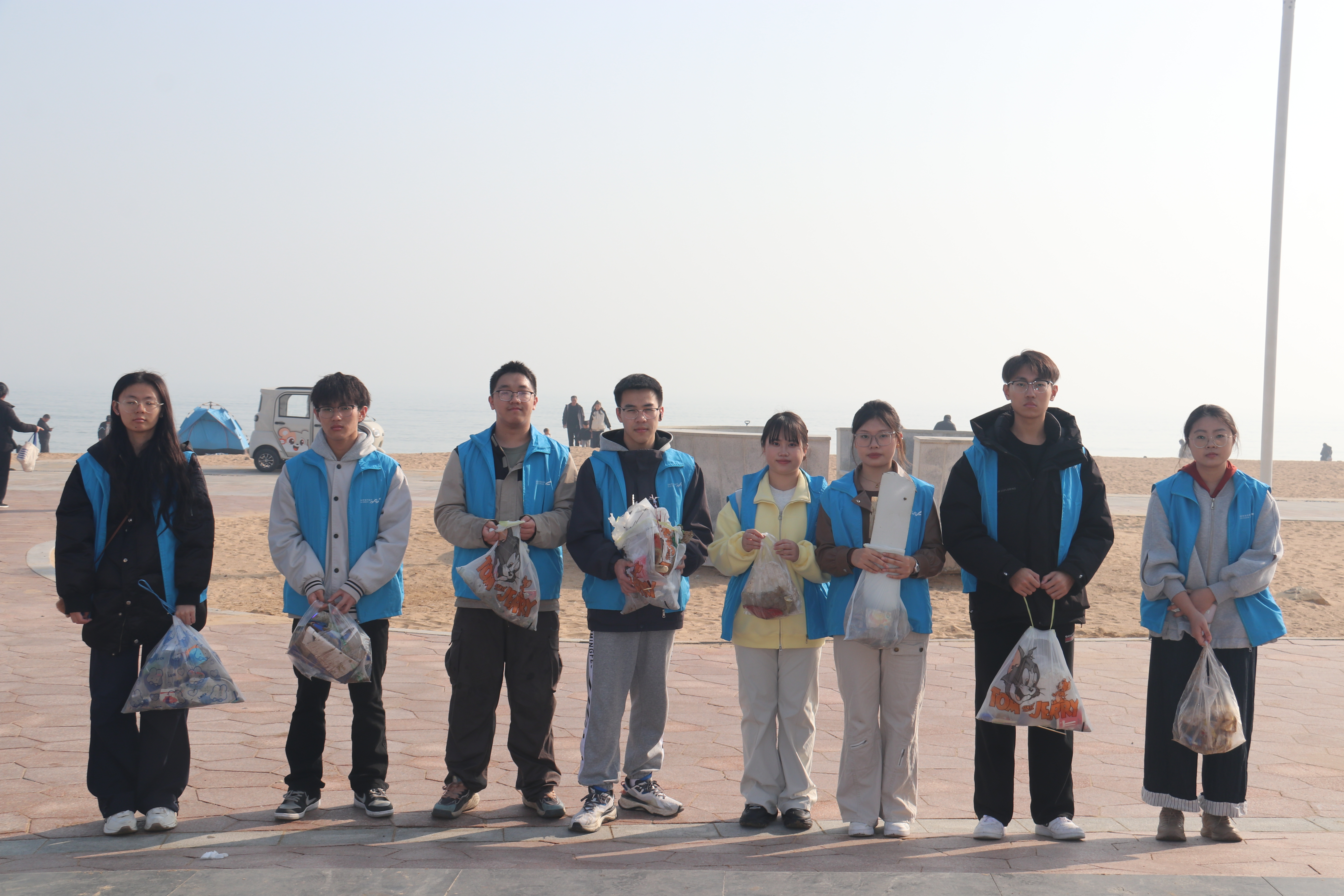 活动当日,服务队遵循“沿线覆盖、分工协作”的原则推进作业,以4人小组为单位,沿蓝谷人才公园的海岸线分段开展清理工作。各小组重点排查沙滩缝隙、近海浅滩处的塑料碎片、食品包装、烟头及废弃渔具等垃圾,同时对游客休闲区域的隐藏垃圾进行彻底清扫。经过近两小时的努力,共清理收集各类垃圾20斤,其中可回收物8斤,不可回收物12斤,使公园海岸面貌焕然一新,有效消除了潜在的环境污染与生态风险。