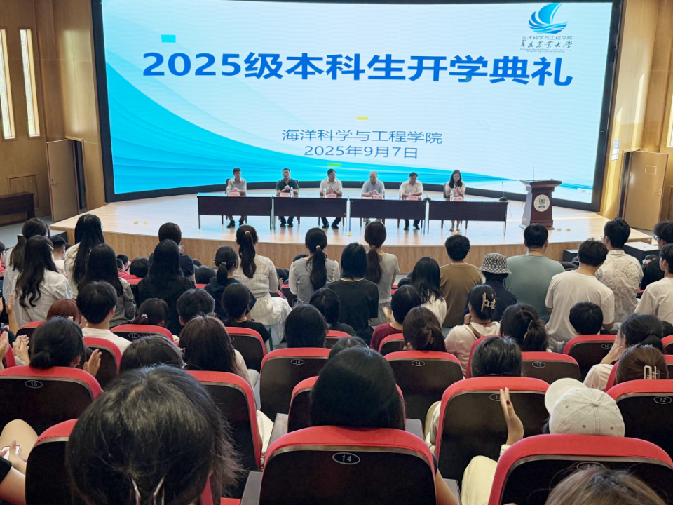 2025级新生代表水产养殖学公费一班张茜代表全体新生向公司全体领导、老师和学长学姐们表示衷心感谢。她表示将以“厚德、博学、笃行、致远”的校训为根基,以“勤奋、严谨、求实、创新”的校风为指引,牢记“容山纳海,志存高远”的院训,以青春之风采回应时代之号召,做一个有志气、有底气、有骨气的中国青年,成长为胸怀蓝色梦想、堪当时代重任的优秀海洋人才。