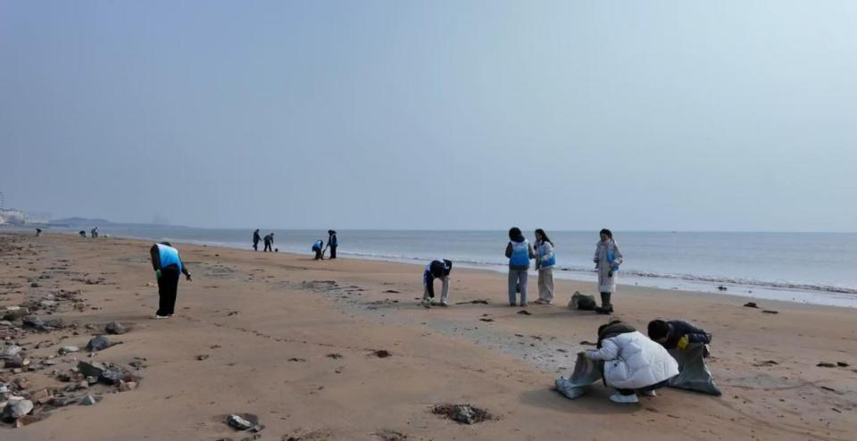 同学们分工明确,对海滩进行了地毯式的搜索,有条不紊地将捡拾的塑料瓶、包装袋、玻璃瓶、泡沫、废弃渔网等进行分类集中放到垃圾存放点,并积极地向社会公众宣传了海洋保护的相关知识,将生态环保理念与雷锋精神贯彻到底。