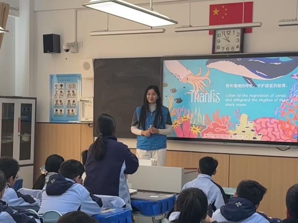 第一组课堂中,赵欣如同学以“珊瑚礁——海洋热带雨林”为主题,通过精美的图片与生动的比喻,深入浅出地介绍了珊瑚的形成机制、生态功能及其对海洋生物多样性的重要意义。课上,同学们聚精会神,踊跃参与互动,问答环节中也积极地探讨小丑鱼、海蛞蝓等生物与珊瑚的共生关系,展现出了活跃的思维和浓厚的求知欲。
