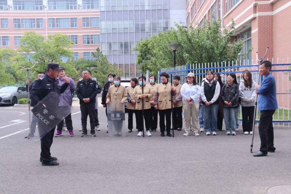 演练前,董清结合当前校园安全形势,向大家讲解了反恐防暴的重要性和相关法律法规,并结合典型案例,详细讲解了在遭遇暴徒袭击时如何做好个人防护,有效保护自身和公共财产安全。在技能培训环节,董清结合防暴经验,现场示范了防暴盾牌、防暴钢叉等专业防暴器械的使用技巧,边操作边讲解,从器械的持握姿势、攻防配合到团队协作要点,让参与演练的人员更加真切地体验到了防暴过程,增强了实战能力。